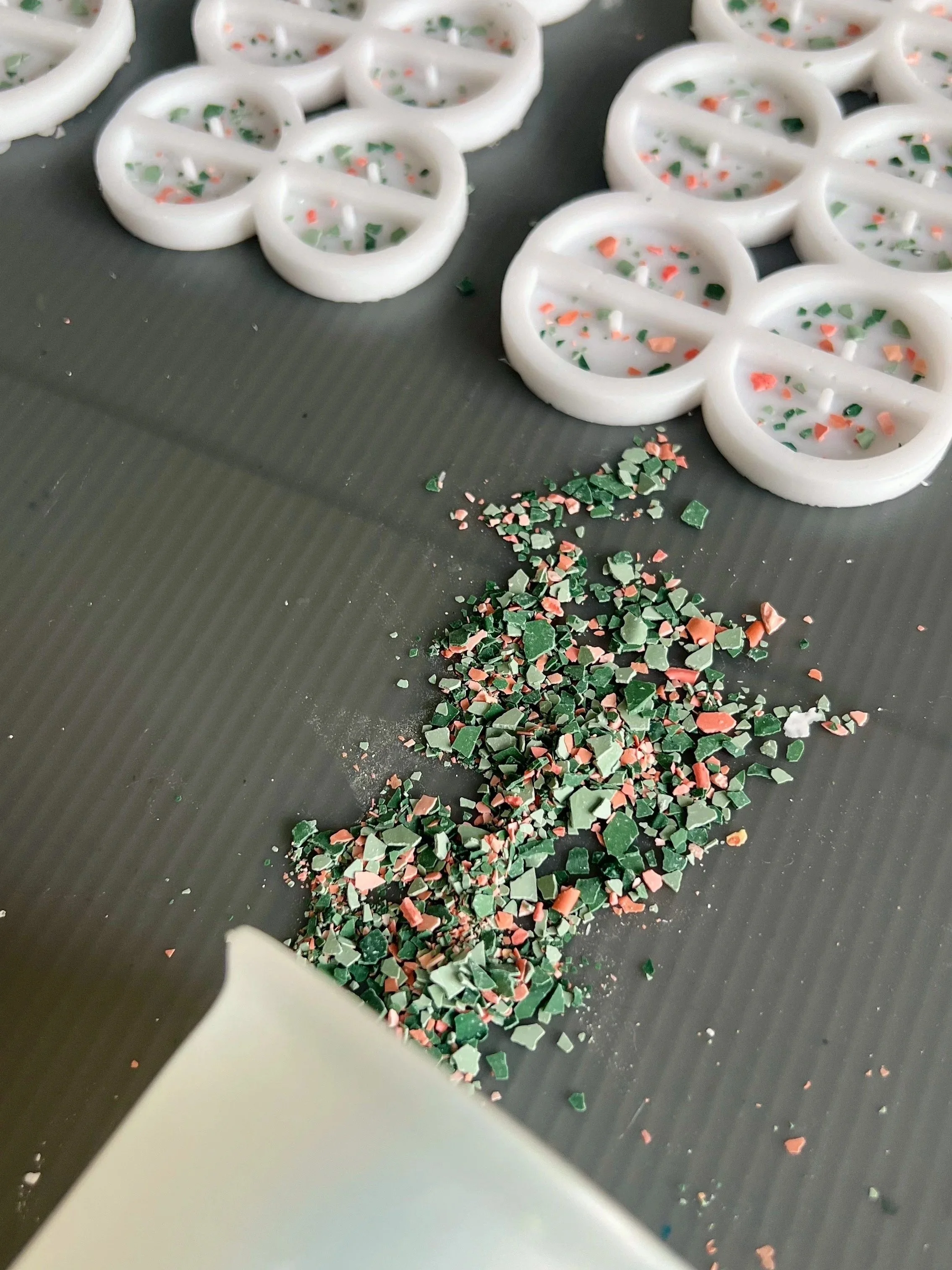 Our packaging is plastic-free and fully recyclable, and every production decision is made with intention — from waste reduction to reusing every leftover chip in terrazzo pieces.